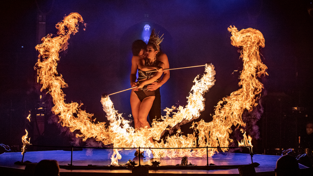 Au cœur d’une Spiegeltent en bois vintage entouré de miroirs, BOHEMIA s’installe comme un cabaret de cirque contemporain mélangeant acrobaties, danse, comédie, théâtre, chant et musique live.