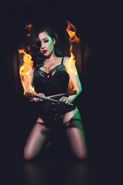 Kitty Bang Bang is the wild child of British Burlesque. Kitty brings fire manipulation, ballet